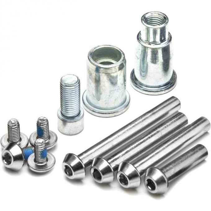 Комплект втулок для двухподвесной рамы Pilot 270 из 5-ти узлов: 1 - втулка с болтом M8x31 мм, 2 - втулка с болтом М6х1.0х54 мм, 3 - втулка с болтом М8х53 мм, 4 - втулка с болтом М6х1.0х68 мм, 5 - шарнир задней вилки (втулка d25xd20x55мм, болт M10x1.25P)