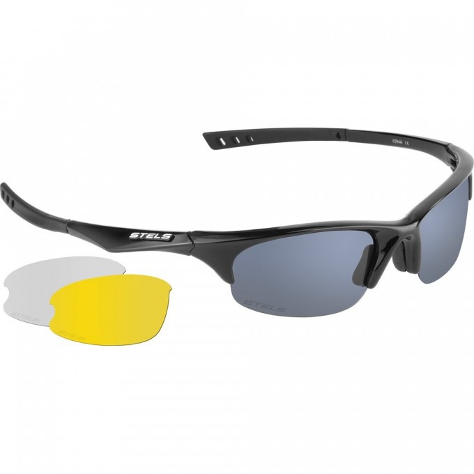 Очки спортивные 9394A: цвет оправы чёрный; тип линз - поликарбонат, дымчатые, толщиной 1,0 мм, поляризованные; футляр #1001-2; салфетка; мешочек; 2 комплекта не поляризованных дополнительных сменных линз - жёлтый/прозрачный.